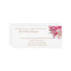 This wedding invitation is shown in the classic white card paper with a modern layout. Art print of Pink flowers. Text in a Golden colour.