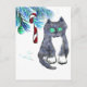 Grey tuxedo kitten eyes the dangling candy cane. Sumi-e, Japanese style ink painting in colour. Ellen Miffitt – Nine Lives Studio cat holiday 14