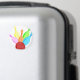 Simple illustration of colourful ten pin bowling skittles being knocked down by a bowling ball. Image available on various gifts and products. Magnets.