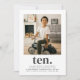A modern 10th Birthday invitation featuring your own photo and the word 'ten.' underneath.