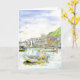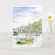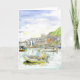 A young man, in a small dinghy (tender), crossing the Fowey River to his sailing boat moored on the Polruan side. The quaint, historic town of Fowey is in the background. The tower of the ancient St. Fimbarrus Church is clearly visible, also the red brick building, which is Fowey Gallants Sailing Club. From original watercolour by Christine Hudson
