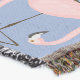 A quality printed throw has its advantages. This is a much finer weave throw than its loopier cousins, and though lighter, it is worth the investment for custom room accessorizing. The back is much prettier than the typical brown, and the fringe on the long sides very vivid, the selvage nicely done. Before photographing, I washed the throw in cold water, delicate, with a thicker woven throw the same size. On tumble dry low, this throw was dry in half the time as the other. This is a very practical quality if you use throws for furniture covers or to wrap up in frequently. The sleekness of the fabric makes it a great layer for accenting or protecting without the feeling of sitting on too much stuff. Perfect for napping or when you feel a light chill coming on. The color printing is beautiful and on this fabric, matched the design and color of my Photoshop image. This is an advantage for blending room fabrics and colors. The fringe on the short sides prints the colors from the design image and therefore varies from the side fringe. I streaked a white fractal line through the plaid pattern to give the illusion of weaving. This printed as crisp as an illusory thread, and put some white in the short side fringe, showing another advantage of print vs loomed- for artistic purposes, line lines, detail, and color integrity can be planned and preserved. My loomed throws have color limitations and more of a needlepoint texture. Print throws reproduce an exact image. The throw felt a little stiff straight out of the package, but this went away in the first delicate wash. Of course I searched the wash water for ink or bleeding and there was none.