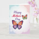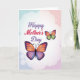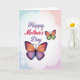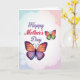 Designed with a central celebratory message, this card features flowing purple lettering paired with rich crimson text placed right in the middle to anchor the layout. Around the words, two stylized butterflies drift through the vertical space, their angled wings suggesting a gentle, affectionate dance ❤️. The larger butterfly shows a warm gradient that shifts from orange-red near the top into lavender and soft blue along the lower edges, all traced with a deep plum outline. Nearby, the smaller butterfly mirrors the warmth with orange wings that blend into fresh green, also edged in a dark outline, as if it’s following close alongside. Both butterflies have thin, curling antennae that add a delicate, friendly character to their silhouettes 🌼. Behind them, the background is a dreamy wash of pastel blues, tender pinks, and luminous white, with soft cloud-like blur and faint light spots. A few bokeh-like circles float near the edges, while the butterflies sit slightly off-center around the middle text.