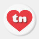 This magnet features a vibrant red heart containing the bold, white, rounded lower case letters tn, a playful abbreviation for Tennessee, the volunteer state.