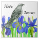 An "I Love Tennessee" tile decorated with a mockingbird in a bed of royal blue iris flowers drawn with ink and painted with watercolor. Inspired by the state bird and state flower of Tennessee. You can edit or remove the text to fit your needs.