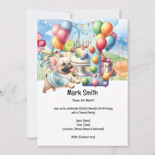 Serve up an ace of an invitation for your little one's 1st birthday with our Tennis-themed Party Invitation! Featuring a playful tennis design, this invitation sets the tone for a sporty and fun celebration. Whether you're inviting guests to join you on the court or at your home, it's perfect for spreading the excitement of their special day. Personalise with all the important details and rally everyone together to celebrate their first year with love for the game of tennis!