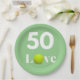Tennis 50th Birthday Anniversary with LOVE text green Paper Plate