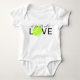 "It starts with LOVE" tennis quote on a unisex baby bodysuit with modern trendy fonts and a bright yellow-green tennis ball design on the front, perfect for the tennis players, coach, or club managers expecting a baby.