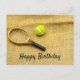 Tennis ball and racket happy birthday postcard