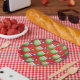 Tennis Ball in Santa Hat Pattern on Red Paper Plate