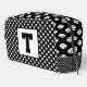Tennis ball pattern toiletry bag with monogram. Personalise with custom colours and name.