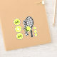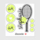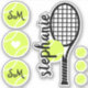 Personalised Name Die-Cut Water Bottle Sticker Set with Tennis Racket and Ball Monogram in a fun and girly brush script font. The sticker set is available several sizes for your gear, laptop, water bottle, sticker collection, OR you can custom print your guest names on each set an use as a unique and luxe party favour, and they are a PERFECT gift to give when attending a tennis theme birthday party.