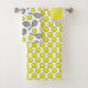 Tennis Balls and Racquets Towel Set in Yellow & Black on White. Designer coordinated patterns. Fun & Practical for any Tennis fan. Also make nice Team gifts for coach, seniors, players, team awards. Mix and Match entire Sports Collections by TMCdesigns.