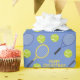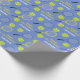 Modern birthday wrapping paper features tennis balls and tennis rackets on a blue background. With greeting text "Happy 21st birthday" and the name. All text can be customised.