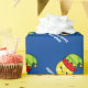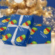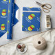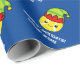 Tennis ball with elf hat custom kid's Christmas Wrapping Paper. Funny sports design with personalised name and greeting. Cute gift wrap rolls for children. Blue or custom colour background. Fun for player, fan and coach.