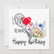 Serve up some birthday cheer with a twist! This card features a tennis ball bursting with vibrant flowers, symbolising the blossoming joy of celebrating another year. Wishing you a day filled with love, laughter, and plenty of ace moments. Happy Birthday!"
