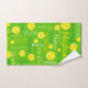 Sporty tennis balls on a grass green court background originally designed text name personalized towel. This typographical racket sports-themed patterned towel has yellow and white tennis balls, and yellow, white, and green text and can be customized with your own name, currently reads Meghann. Contact me for longer name requests. Original art and design by Sarah Trett for www.mylittleeden.com