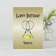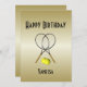 Fun invitation for the tennis player on gold gradient.The words happy birthday can be changed. Add the names, date, and details. A beautiful invitation that can be easily customised for many special occasions and happy milestone celebrations -- the text can be used for any event including anniversary party, birthday party, wedding, save the date, exclusive affair or event.