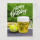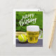Tennis Birthday with Beer and ball racket on green Postcard