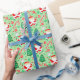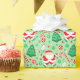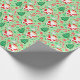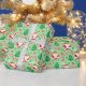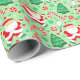 Creative tennis themed holiday gift wrap featuring Santa Claus tennis player surrounded by Christmas candy and cookies.