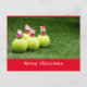 Tennis Christmas Postcard with tennis ball and Santa Claus on green grass