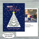 This fully customisable christmas card has a fun design of a christmas tree made of tennis rackets, topped with a yellow tennis ball. The background is dark blue, with a scattering of falling snow. Add your name or other text on the front to personalise the design. On the back, upload your own photo, and edit the message: "May the year ahead be full of love, joy and happiness ... and tennis!"