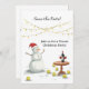 Celebrate the holidays on the court! This festive Tennis Christmas invitation features Santa Claus and a cheerful snowman wearing a Santa hat, standing on a snowy tennis court surrounded by twinkling fairy lights, scattered tennis balls, and a small table with wine glasses for a touch of holiday cheer.