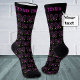 These black socks have a pattern of bright pink tennis rackets and tennis balls. The text around the top is fully editable, so you can put the same or different wording on each sock. The example text is "Tennis Tennis Tennis" . This is a great eco-friendly christmas stocking stuffer gift for a keen tennis player.