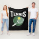 Retro style grunge "Tennis" text design with yellow and green tennis balls and racket decoration