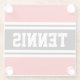 This sporty, athletic design features bold TENNIS text inside a highlighted black and white racing stripes against bright red outer stripes. The text in this design can be personalised.
