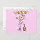 A stick figure female tennis player and yellow text that reads "TENNIS" on tennis player T-shirts, mugs, hoodies, cards, stickers, magnets, and other tennis apparel and items that make great gifts for tennis players!