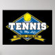 Blue and gold triangle sport logo featuring a tennis ball with Tennis Is My Life text! Born to Play, Destined To Win yellow banner across the bottom! Great tennis poster for players and fans!