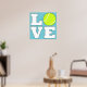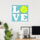 Tennis LOVE Custom Colour Square Poster: A beautiful poser for tennis players and fans. You can change the background colour, currently set on light blue, by clicking the [Customise] button and using the colour picker tool. Makes decoration for the bedroom, game room, tennis facilities or office!