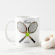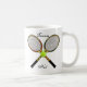 Tennis rackets make up this fun mug. Customisable so you can add your own text and change the background colour. Makes a great gift!