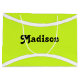 Make your own personalised tennis ball large gift bag for tennis players and fans. Just click to personalise the template and type any tennis player's name or any other text in the custom text box. These can add a fun special touch to gifts for tennis players, coaches and fans. Great for tennis parties and team banquets.