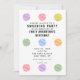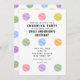 Trendy tennis party invites featuring colourful balls and smashing line.
