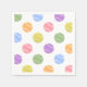 Tennis party or event napkins featuring colourful tennis balls in purple, blue, pink, yellow, orange and green hues.