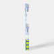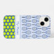 This tennis-themed design uses tennis balls create a bright polka dot pattern, and there is a further pattern using tennis rackets. A white stripe gives space for you to personalise with a name or other text. Background: two shades of blue.
