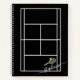 Girly and feminine personalised tennis design notebook with a tennis court outline and custom name in an elegant script calligraphy handwriting font and tennis racket and tennis ball monogram logo. The colours can be customised using the advanced template editor to create a unique and one of a kind gift for the tennis lover, player, teammate, or coach.