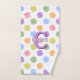 Creative tennis towel design featuring colourful tennis balls pattern. To personalise, edit text to add monogram.
