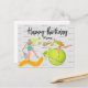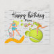 Tennis woman player playing tennis with lots of tennis ball on text graphic for Birthday Card