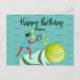 Tennis woman player playing tennis with lots of tennis ball on text graphic for Birthday Card