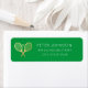 Simple but elegant and classic return custom personalised return address label in minimalist minimalistic design in tennis court green and minimal simple golden coloured rackets and tennis ball. Preppy tennis racquet theme return address label design.