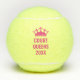 Personalised team name tennis balls with a pink crown on top suitable for any royalty, princess, queen or girly tennis club keepsake gift for your tennis buddies.