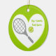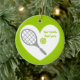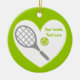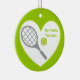 Tennis racket and ball round ceramic ornament. It showcases a grey racket, a green tennis ball and your text on white background in a heart. Personalise it and add the text “Best tennis player” or monogram, name or your message. The perfect gift for the tennis player or tennis lover in your life. Some elements courtesy of vectorportal.com.