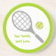 Tennis racket and ball round coaster that displays a grey racket, a green tennis ball and your text on white background with green border. Personalise it and add the text “Best tennis player” or monogram, name or your message. The perfect gift for the tennis player or tennis lover in your life. Some elements courtesy of vectorportal.com.