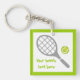 Tennis racket and ball keychain displaying a grey racket, a green tennis ball and your text on white background with green border. Personalise it and add the text “Best tennis player” or monogram, name or your message. The perfect gift for the tennis player or tennis lover in your life. Some elements courtesy of vectorportal.com.