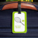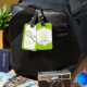 Tennis racket and ball luggage tag that showcase a grey racket, a green tennis ball and your text on white background with green border. This cool design is a template and it is completely customisable. Personalise it and add the text “Best tennis player” or monogram, name or your message. Some elements courtesy of vectorportal.com.