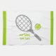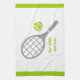 Tennis racket and ball kitchen towel displaying a grey racket, a green tennis ball and your text on white background with green border. Personalise it and add the text “Best tennis player” or monogram, name or your message. The perfect gift for the tennis player or tennis lover in your life. Some elements courtesy of vectorportal.com.