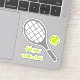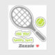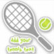 Tennis racket and ball grey and green custom sticker design featuring a grey racket, a green tennis ball and your text on white background. This cool design is a template and it is completely customisable. Personalise it and add your text or monogram, name or your message. The perfect gift for the tennis player or tennis lover in your life. Some elements courtesy of vectorportal.com.